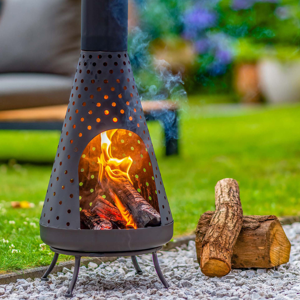 Enhance your outdoor space with the RedFire Chimenea Napa. This stylish chimenea boasts a matte black, heat-resistant powder coating for a modern look that complements any garden, terrace, or balcony. Its expertly crafted design features a perforated side, allowing for a captivating view of the hypnotic flames within. Gather friends and family around this welcoming centrepiece, enjoying the warmth and flickering glow on cool evenings. The compact design ensures easy movement and placement, while the included tools make assembly a breeze—simply attach the chimney and three legs. Experience the full charm of the Napa, especially on those dark evenings when warmth and light are most needed.