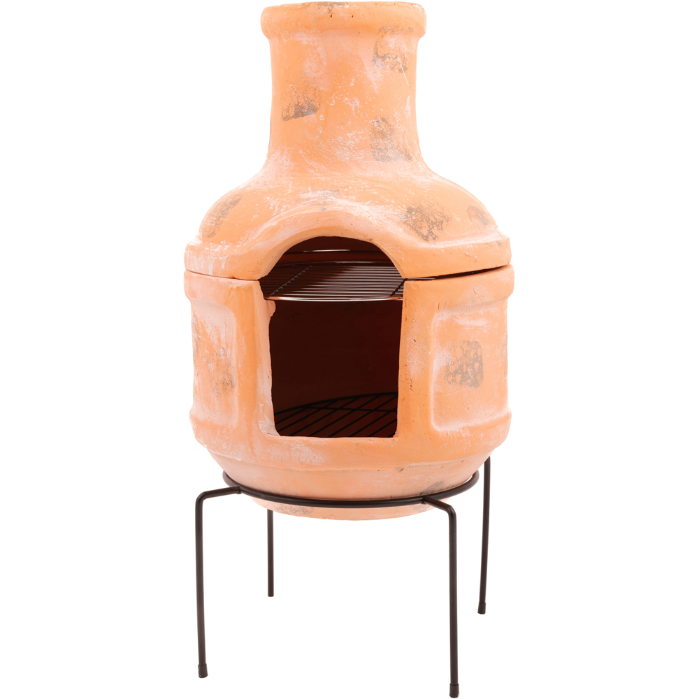 Embrace the warmth of a traditional Mexican fire with the RedFire Mexican Lima clay chimenea. This efficient design distributes heat evenly, meaning you'll stay warm longer using fewer logs. The versatile design easily converts from a cosy fireplace to a barbecue; simply remove the upper clay section to reveal a spacious grilling area. A metal base ensures stability, while the included grill, firestick, and lid enhance your outdoor cooking experience. Protect your chimenea from frost by keeping it dry, using a cover, or storing it indoors. Its two-part construction makes it surprisingly easy to move.