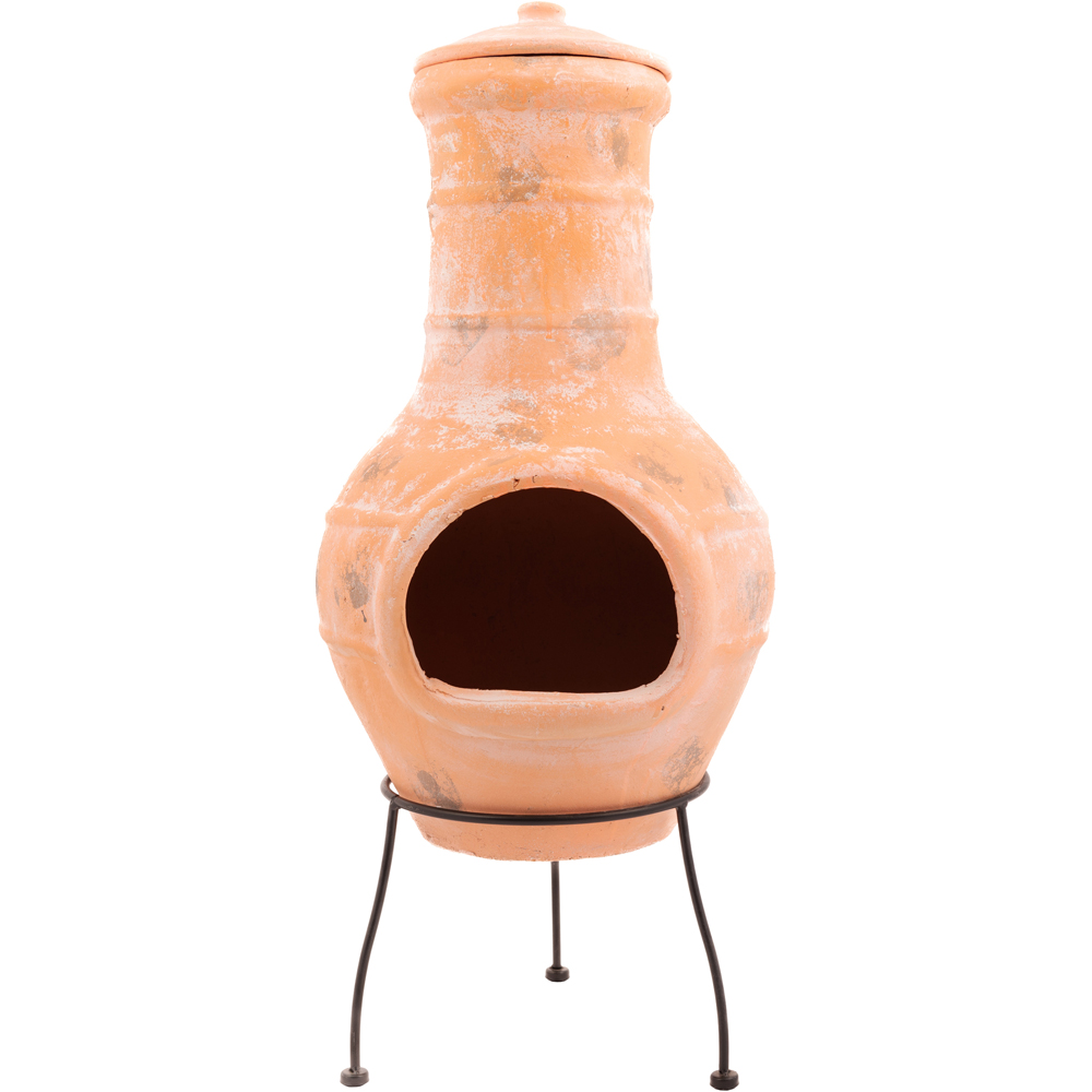 The RedFire Lima clay chimenea adds a vibrant Mexican flair to your outdoor space. This porous clay design provides excellent heat conduction, requiring fewer logs and offering superior durability to metal alternatives. Its charming Mexican style creates a cheerful atmosphere, even when not in use. Included are a fire poker for easy lighting and a protective lid to shield it from rain. While the lid helps, storing the Lima in a dry place during winter is recommended to prevent frost damage.