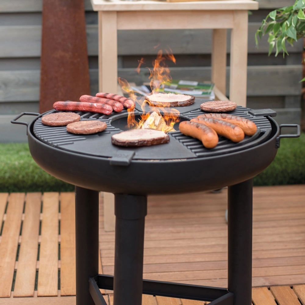 Enjoy long summer nights with the Palau party grill, a stylish and practical alternative to a traditional barbecue. This contemporary firepit is perfect for creating a warm and inviting atmosphere, and its versatile design makes it ideal for both cooking and relaxing. The removable cast iron plancha cooking ring (14kg) lets you prepare delicious teppanyaki meals, while the sturdy steel construction with a heat-resistant black powder coating ensures durability. After your meal, simply remove the ring and enjoy the warmth of the fire. Measuring 60 x 72 x 68cm, the Palau is the perfect addition to any backyard gathering. The plancha ring is made from sustainable cast iron.