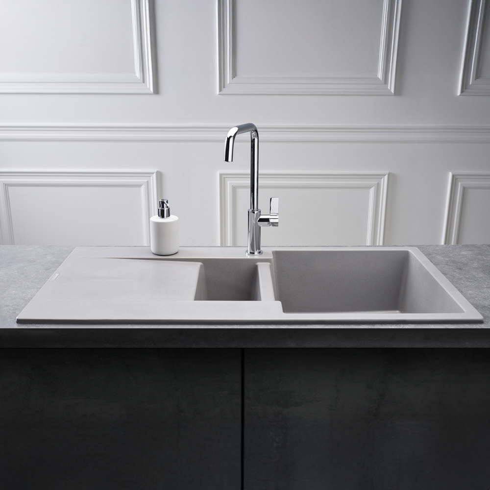 Reginox Amsterdam Grey Silvery Granite 1.5 Bowl Kitchen Sink 500 x 1000mm