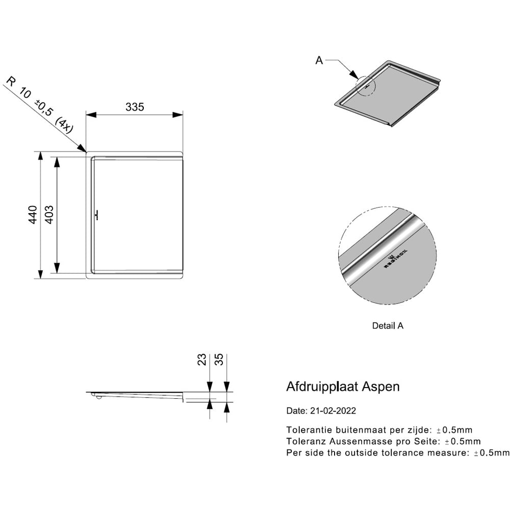 Reginox Aspen Stainless Steel Drainer 440 x 335mm