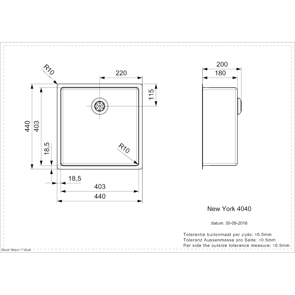 Reginox New York Square Bowl Kitchen Sink 400 x 400mm