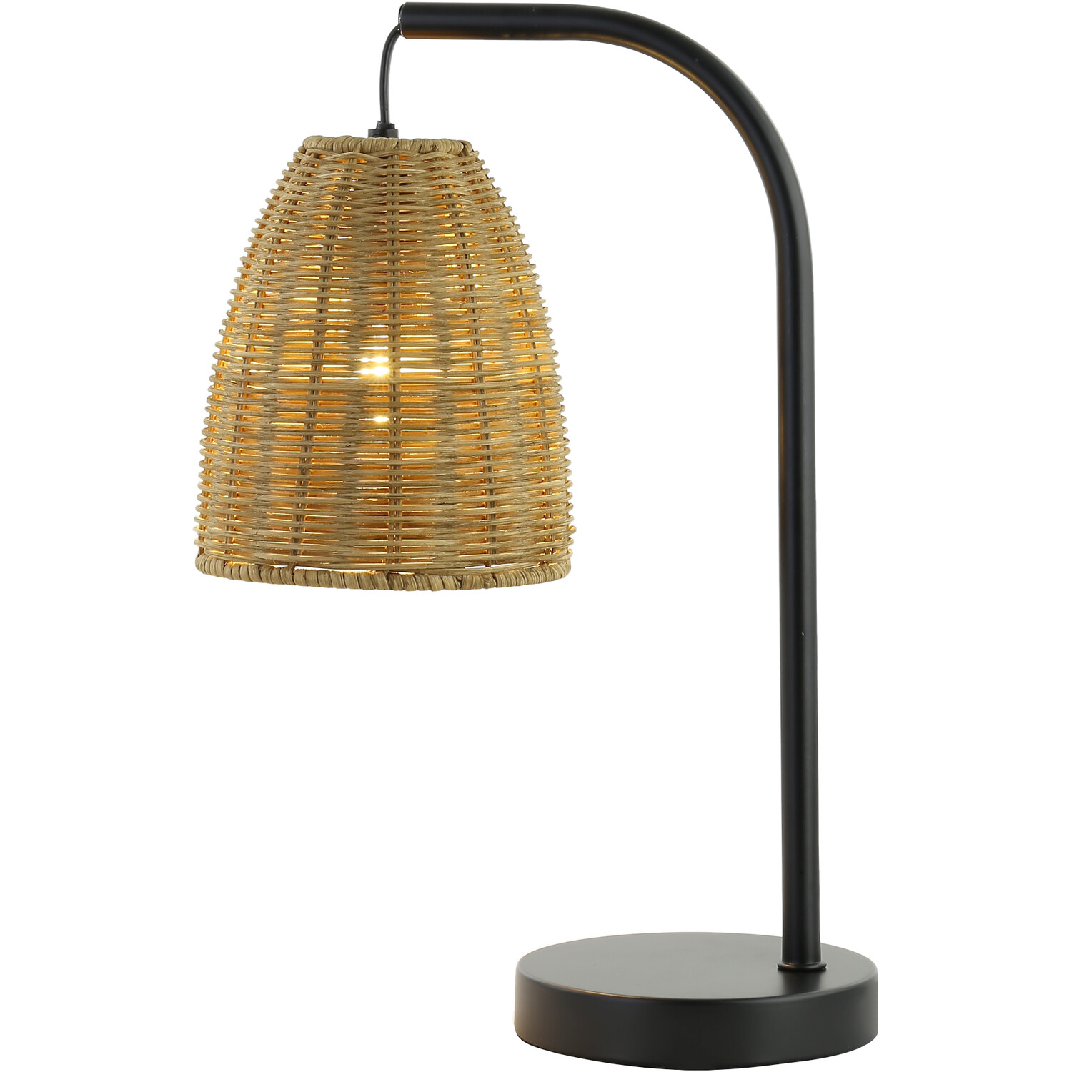Add a touch of natural elegance to your home with the Rhyan table lamp. Its sleek, long pole and circular base are complemented by a striking rattan-effect shade, creating mesmerising light and shadow play. Perfect for a living room, bedroom, or home office, this stylish lamp effortlessly blends form and function, adding a warm, earthy feel to any space.