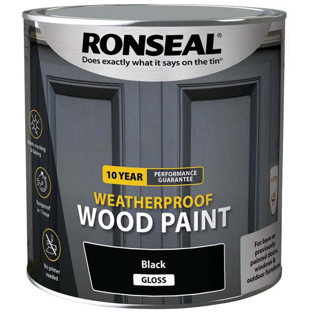 Ronseal 2 in 1 10 Year Weatherproof Black Gloss Primer Wood Paint 2.5L