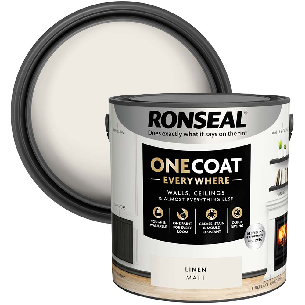 Transform your home with Ronseal One Coat Everywhere paint. This versatile paint makes decorating quicker and easier, delivering rich colour and tough protection to walls, ceilings, and pretty much anything else you want to paint. Its stain-resistant and washable finish will stand up to the challenges of everyday life.