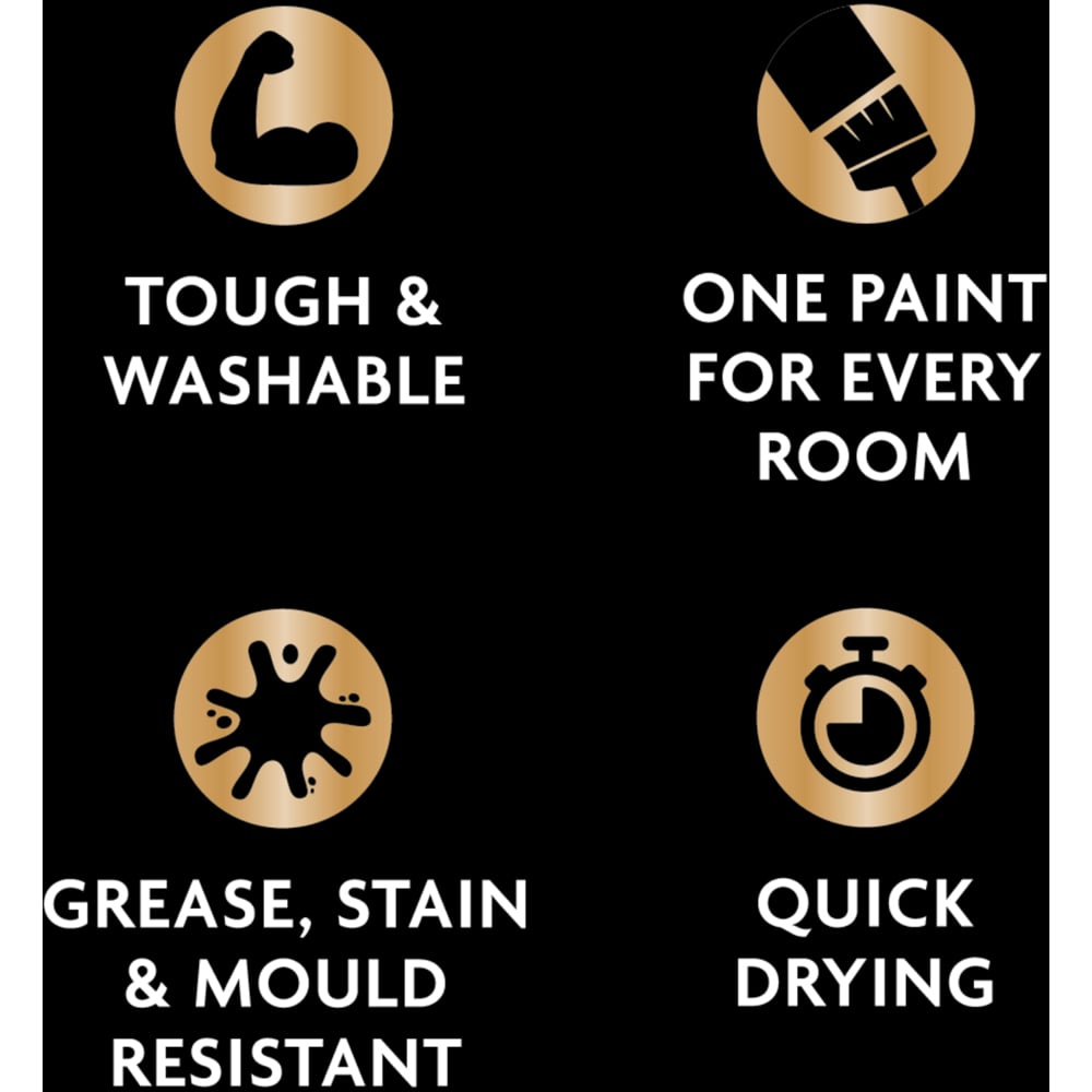 - One paint for every room - can be used on previously painted walls, bare plaster, wood and metal