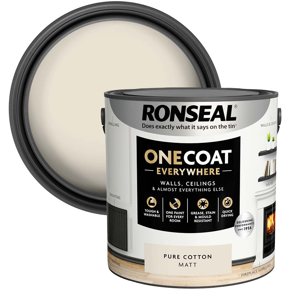 Transform your home with Ronseal One Coat Everywhere paint. This versatile paint simplifies and speeds up decorating, delivering rich colour and tough protection to walls, ceilings, and pretty much anything else you want to paint. Its stain-resistant and washable finish ensures it readily withstands the challenges of everyday life.