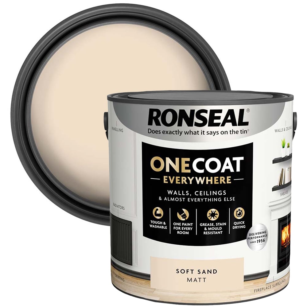 Transform your home with Ronseal One Coat Everywhere paint. This versatile paint simplifies and speeds up decorating, delivering rich colour and tough protection to walls, ceilings, and pretty much anything else you want to paint. Its stain-resistant and washable finish ensures it readily withstands the challenges of everyday life.