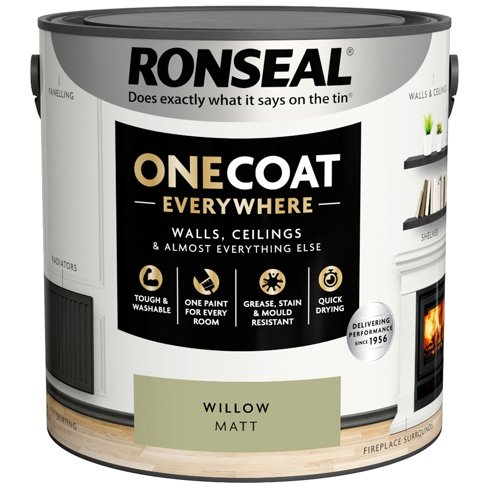Transform your home with Ronseal One Coat Everywhere paint. This versatile paint simplifies and speeds up decorating, delivering rich colour and tough protection to walls, ceilings, and pretty much anything else you want to paint. Its stain-resistant and washable finish ensures it readily withstands the wear and tear of daily life.
