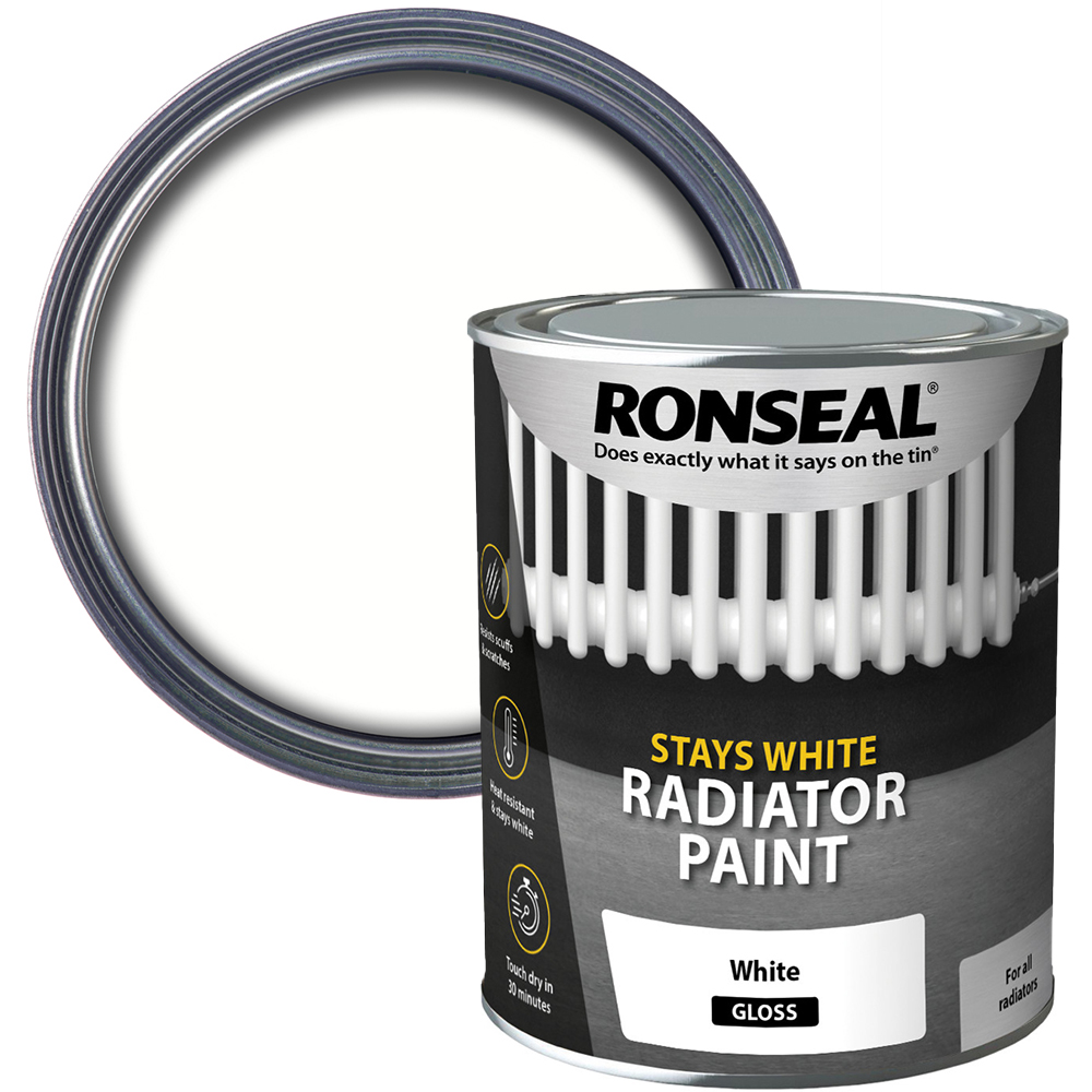 Achieve a pristine, long-lasting white finish on your radiators and pipes with just one coat of Ronseal One Coat Stay White Radiator Gloss Paint. This tough, durable, heat-resistant paint offers a beautiful gloss effect. Ready to handle in just 30 minutes.