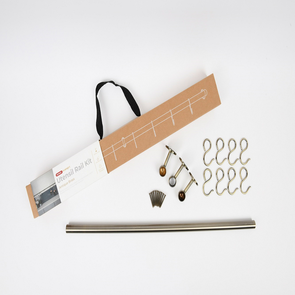 This Rothley Antique Brass Utensil Rail offers a stylish and practical solution for kitchen storage. Crafted from robust stainless steel, ensuring rust and corrosion resistance for lasting use, both indoors and outdoors. Its elegant antique brass finish elevates your kitchen aesthetic without breaking the bank. The rail features secure, sliding S-shaped hooks, keeping utensils readily accessible while preventing them from falling. Easily adaptable to your space, it can be cut to size using a fine-toothed hacksaw. A space-saving alternative to bulky cabinets, this rail adds a touch of refined design. Dimensions: 19 x 600mm.
