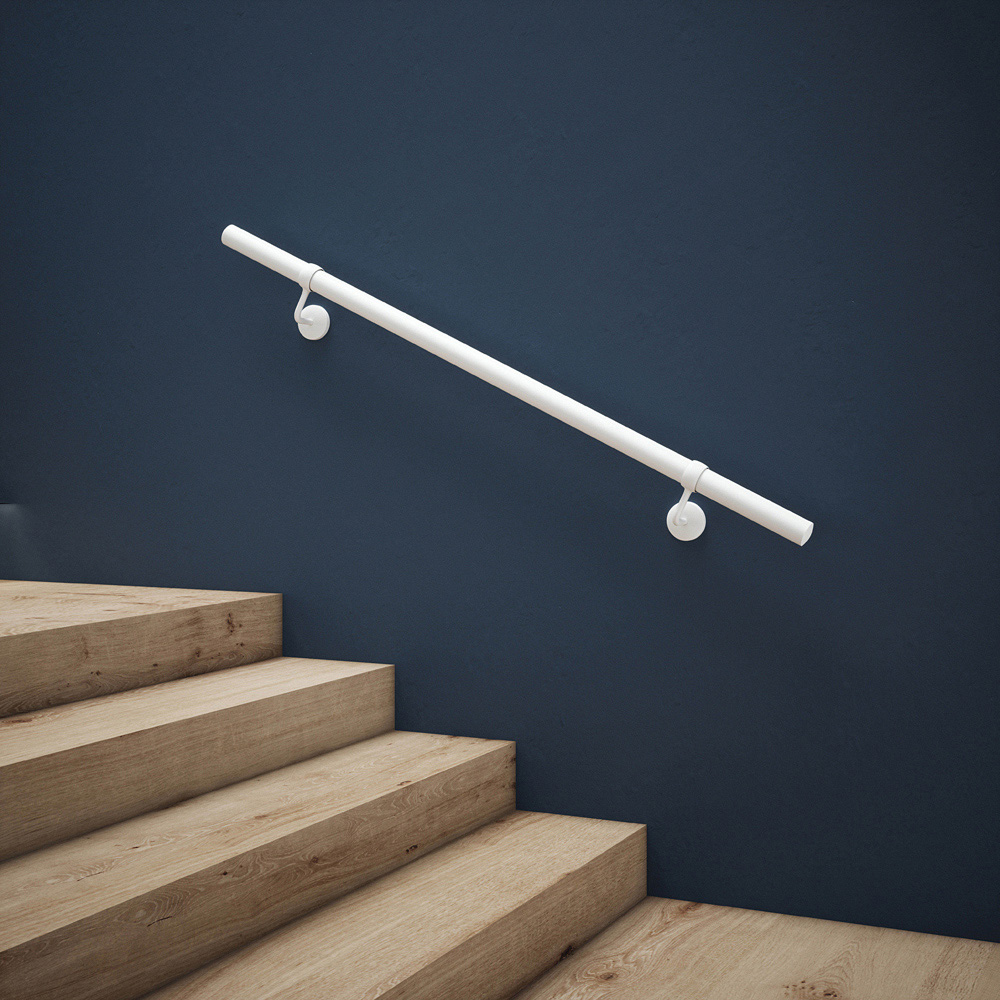 Enhance your staircase with the Rothley Matt White Stair Handrail Kit (1.2m), a stylish and functional addition that effortlessly blends modern elegance with practicality. This easy-to-install kit requires no drilling, minimising the risk of damage and ensuring a swift and straightforward fitting process. Crafted from durable steel with a protective lacquered finish to prevent rust and colour fading, this high-quality handrail kit is FIRA tested for your peace of mind. Simply cut the rails to your desired length using a hacksaw or jigsaw. Perfect for any interior space.
