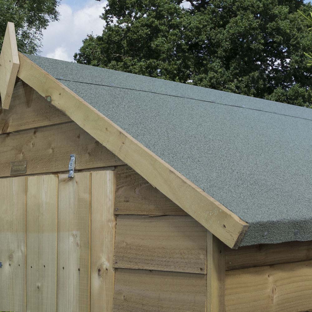 Keep your gardening essentials safe and dry in the Rowlinson 6x4 Overlap Garden Shed. Perfect for medium-sized gardens and patios, this shed boasts a traditional apex roof design for maximum headroom and robust double purlin roof supports for added strength. Natural light streams in through a single fixed styrene glazed window, which you can install on either side for optimal placement. Crafted from pressure-treated 8mm overlap cladding, this shed is built to last, offering years of reliable storage. It's supplied with a natural timber finish. Dimensions: Overall - H200 x W136.5 x D183.5cm, Internal (max) - H194 x W117.5 x D177cm, Internal (min) - H159 x W117.5 x D177cm, Door - H163 x W64.5cm, Footprint - W117.5 x D177cm.