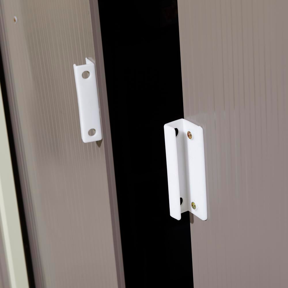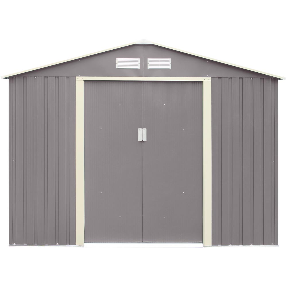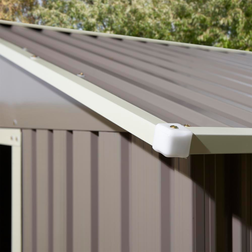 Safeguard your garden tools with the elegant and durable Rowlinson Trentvale 8 x 6ft metal apex shed. This shed serves as a low-maintenance option compared to traditional timber sheds, ensuring your equipment remains dry and secure. Featuring double sliding lockable doors for easy access and gable vents that promote better air circulation, it offers both convenience and functionality. The spacious interior is ideal for organising all your gardening essentials. Built to resist fire and rot, this shed gives you peace of mind by protecting your belongings from harsh weather. It comes pre-painted in a modern light grey with off-white trim, effortlessly complementing any outdoor setting. With a cladding thickness of 0.25mm, maintenance is minimal. Internal dimensions are H1880 x W2510 x D1710mm, and the door dimensions are H1570 x W1090mm.