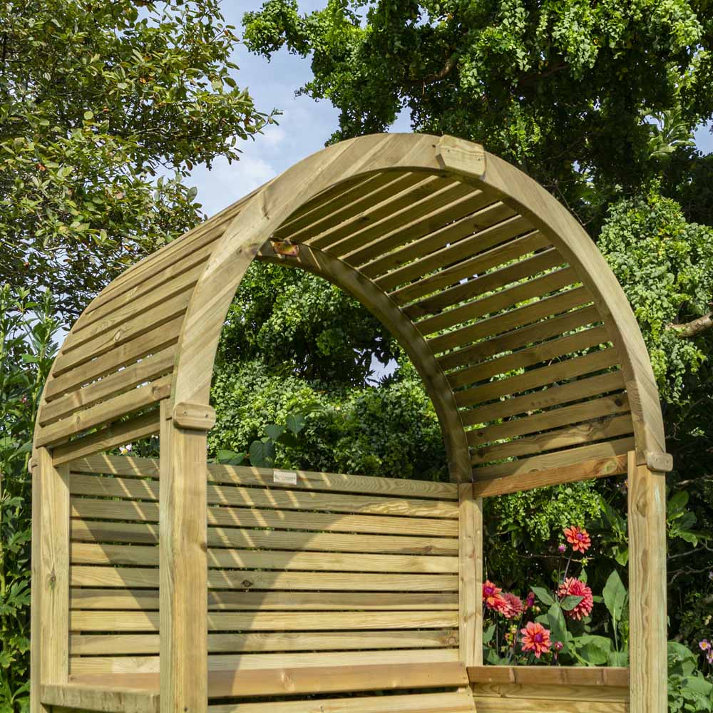 Enjoy your garden from the shade of the elegant Rowlinson Modena Arbour. This contemporary arbour boasts a horizontal slat roof, creating an airy yet shaded haven perfect for relaxation. Protect your garden furniture with one of our durable, waterproof covers – we offer a wide selection to ensure the perfect fit. Please note: This item may be delivered directly from one of our suppliers, see our terms and conditions for details.