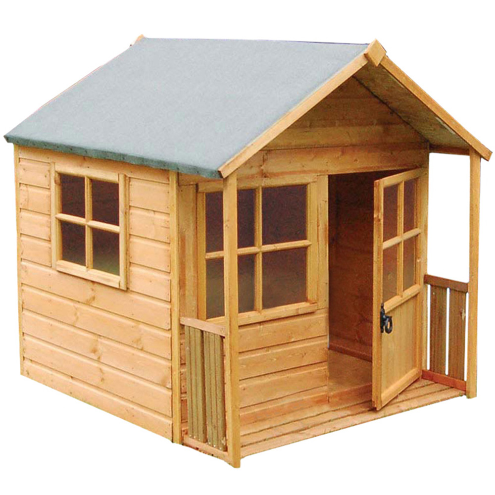 Unleash your children's creativity with the Rowlinson Playaway Playhouse! This delightful honey brown playhouse boasts a spacious veranda and two windows, perfect for imaginative adventures. Durable construction, featuring a tongue and groove floor and a solid board roof with mineral felt, ensures lasting fun. Rest assured knowing it's CE accredited and meets European Standard EN71 for child safety. Dimensions: Overall H160.5 x W159.5 x D156.5cm, Internal (max) H150 x W149.5 x D118cm, (min) H111.5 x W149.5 x D118cm, Door H95.5 x W60cm, Footprint W149.5 x D148.5cm.