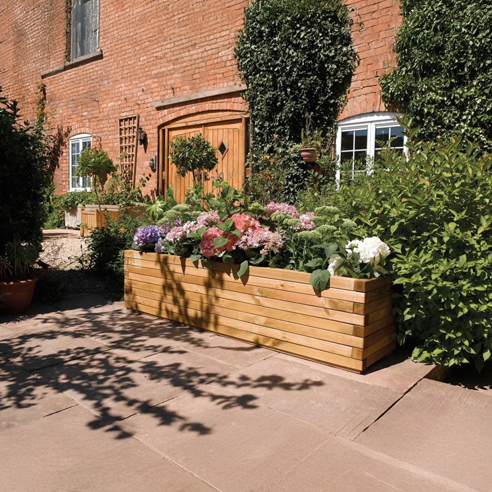 Create a stunning garden focal point with this elegant Rowlinson Patio Planter. Its pressure-treated, naturally finished timber resists rot, making it perfect for showcasing a mix of plants, flowers, shrubs, vegetables, or herbs in contemporary style.