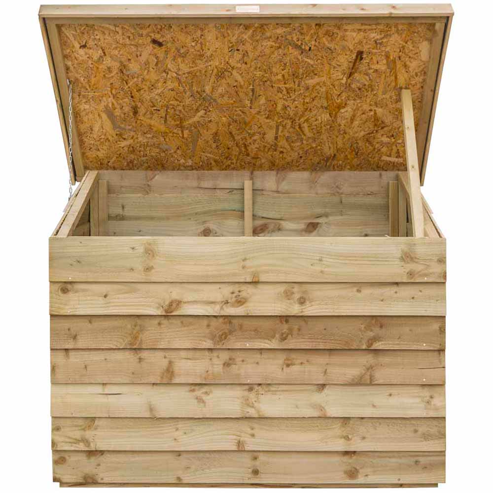 Transform your outdoor space with the Rowlinson Overlap Patio Chest, an ideal choice for organising your garden tools and supplies. This sturdy chest includes a convenient lifting lid equipped with a stay to keep it open, allowing for effortless access to your items. Designed with a solid board roof for enhanced strength, it comes in a natural timber finish and is pressure treated to guard against rot, ensuring enduring quality. Enjoy a tidy garden with this stylish and practical storage solution.