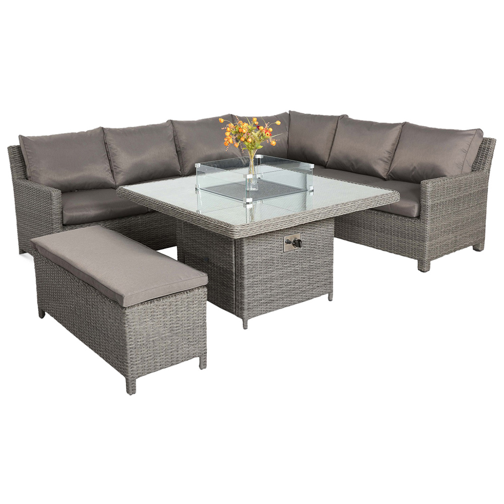 Royalcraft Paris 7 Seater Square Firepit Dining Set Grey