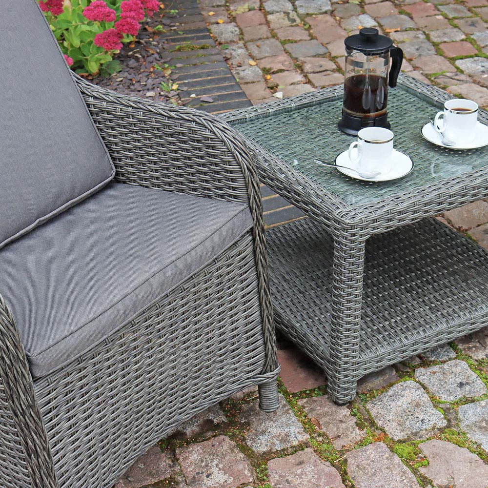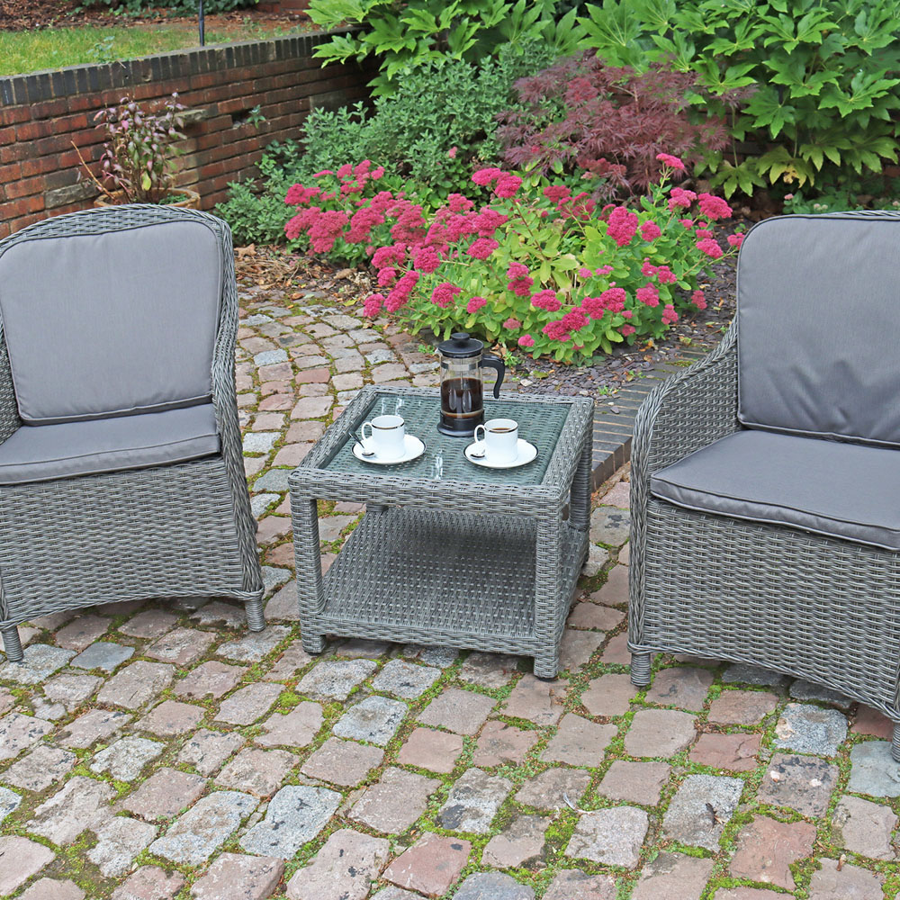 Elevate your outdoor moments with the Royalcraft Paris Grey 2 Seater Imperial Companion Seat, a perfect harmonious blend of style and functionality. Crafted with a robust aluminium framework and exquisite hand-woven synthetic double half-round rattan weave, this set ensures unparalleled strength and resilience against the elements. Experience ultimate comfort with two elegantly designed imperial chairs featuring weather shield cushions that effectively resist water and stains, ensuring year-round use. The stylish small square table, 60cm x 60cm in size, is perfect for drinks, snacks, or a good book, making it an ideal choice for patios, gardens, or balconies. This exquisite set promises not only aesthetic appeal but also lasting enjoyment in any outdoor setting.