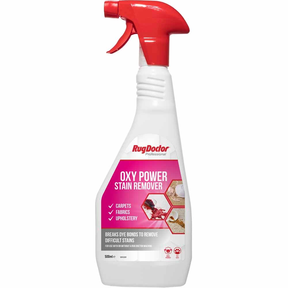 Banish stains with Rug Doctor Oxy Power Stain Remover! Its oxy-action formula attacks stains at their source, leaving carpets looking their best. This powerful stain remover provides the cleaning power of bleach without harming carpet fibers. Use it effectively on carpets, fabrics, upholstery, ceramic surfaces, plastic, wood, metal, tiles, and even painted walls. Pet-safe, it',s perfect for homes with animals.