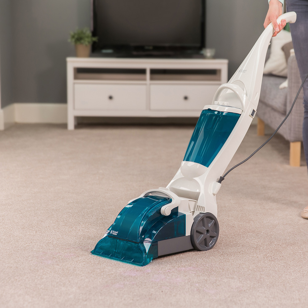 Effortlessly remove carpet dirt with the Russell Hobbs Refresh & Clean Carpet Washer. Weighing under 6kg, its lightweight design ensures convenient manoeuvrability throughout your home. The 8.5m power cord provides extended cleaning reach, minimizing plug changes. Simply fill the clean water tank with warm water, add your preferred carpet cleaning solution (following the bottle instructions), and power on. The 24cm wide jet spray deeply penetrates carpets, while the bristle brush agitates and removes embedded dirt, efficiently transferring it to the dirty water tank. Ready to use straight from the box, just attach the handle (using a cross-headed screwdriver), fill the tank, plug in, and start cleaning.