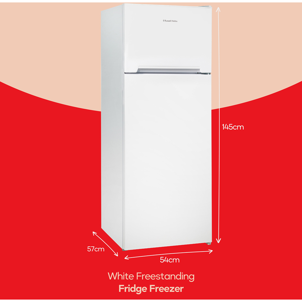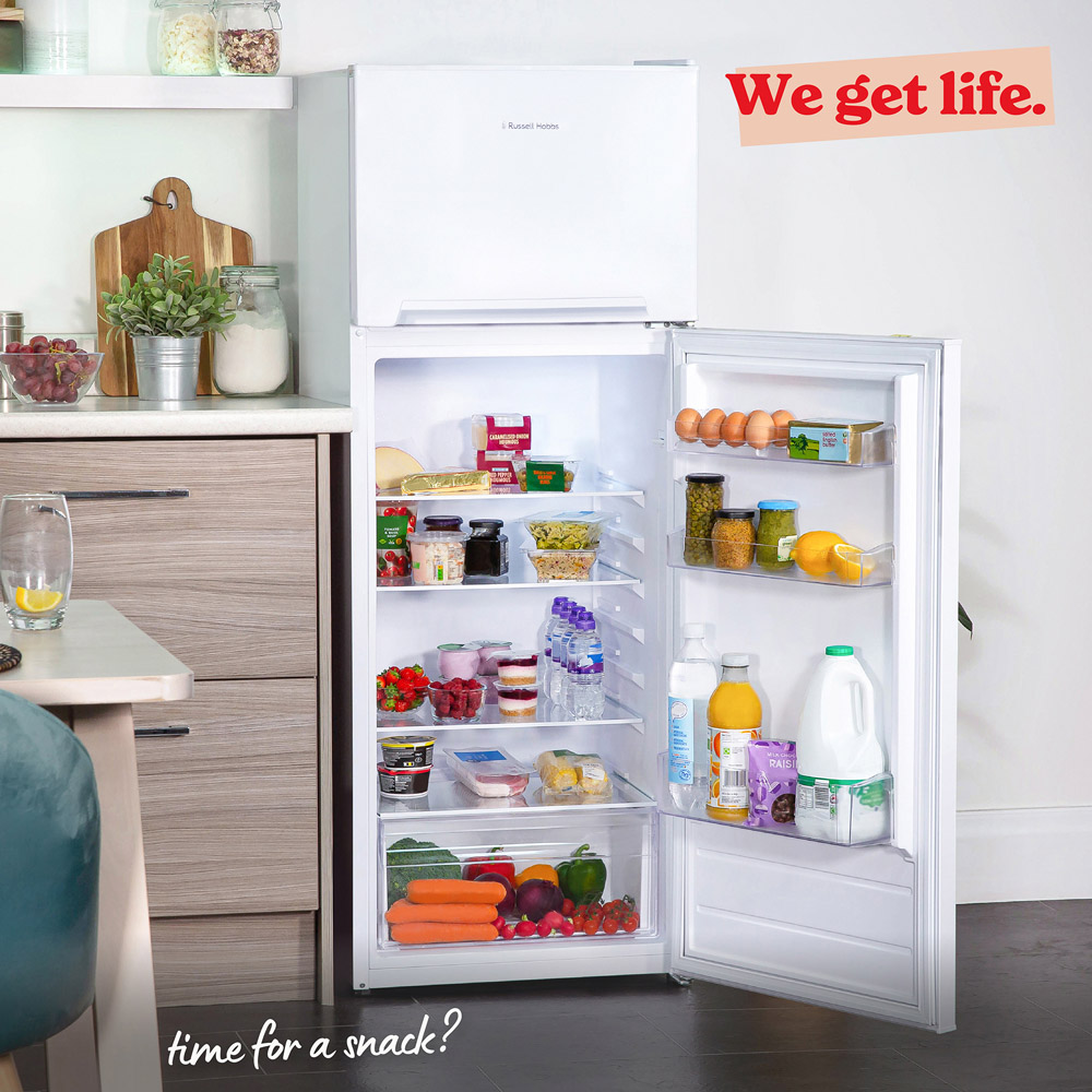 This Russell Hobbs Freestanding Top Mounted Fridge Freezer is both functional and contemporary with its sleek white design. With a generous 213L capacity - 171L for the fridge and 42L for the freezer, it's got all the space you need. Inside the fridge, there’s four glass shelves, three door racks, and a crisper compartment, providing ample room for your fresh goods. And not to forget the 42L freezer section which is perfect for stocking up on your frozen treats and family favourites. Even better, with its top-mounted design it’s super easy to grab your frozen goods. Plus, it's got adjustable feet and a reversible door, ensuring it fits seamlessly into any home and can be moved around effortlessly to suit your needs. For added peace of mind, this Russell Hobbs Fridge Freezer comes with a 1-Year Guarantee, plus an extra year upon registration. This way, in the unlikely event something goes wrong, you know we'll always be on hand to help.