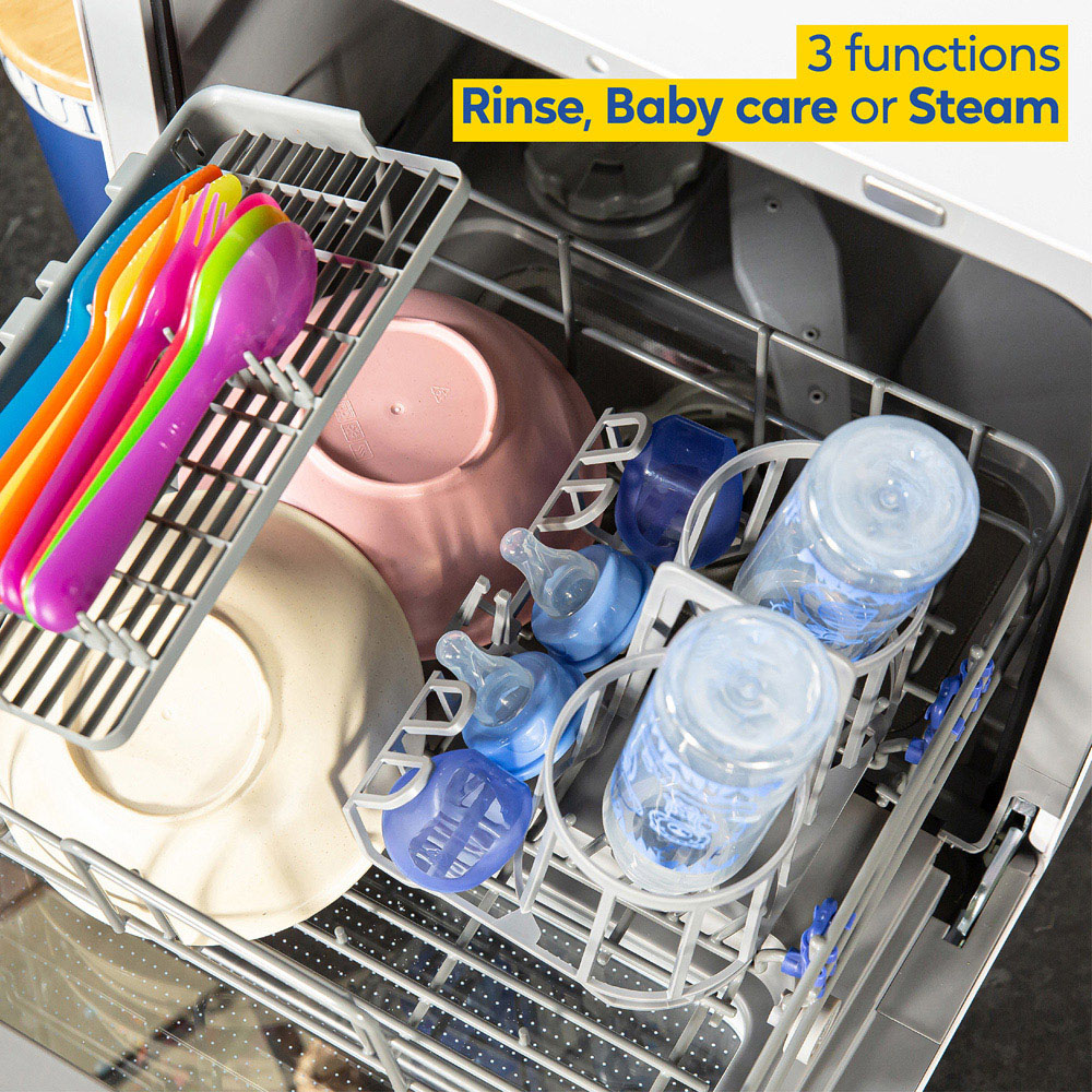 Offering sparkling results for every load, it features eco, one-hour, glass, and rapid wash programmes. Additional rinse, baby care, and steam functions are included, along with a roomy drawer and a handy mug shelf complete with wine stem support.