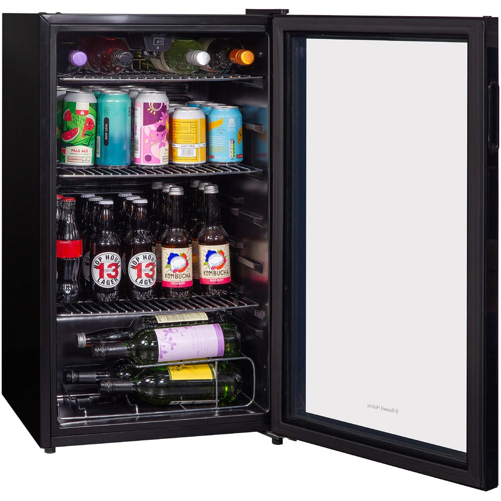 This impressive 93L freestanding wine, beer and drinks cooler is the perfect addition to your kitchen or entertainment area. With three removable shelves, and 1 wine shelf, it's easy to customise the cooler to your needs. Fully stocked, this cooler can hold up to four bottles of wine and 48 x 330ml cans, meaning its ideal for large families or those that love to entertain. With a stylish and contemporary design, this cooler will complement any setting and the quiet 39dB noise level won’t intrude on your party atmosphere either. The sleek black door comes with a tempered glass window, so that you can easily see what’s inside without opening the door and the handy LED light will help you to quickly find your chosen tipple. The adjustable thermostat has an impressive temperature range from 2°C - 15°C, so you can precisely adjust the temperature to suit the contents of your cooler. Plus, this cooler comes with adjustable feet so that you can place it wherever you like it, without any hassle. For added peace of mind, this Russell Hobbs appliance comes with a 1-Year Guarantee, plus an extra year upon registration. This way, in the unlikely event something goes wrong, you know we'll always be on hand to help.