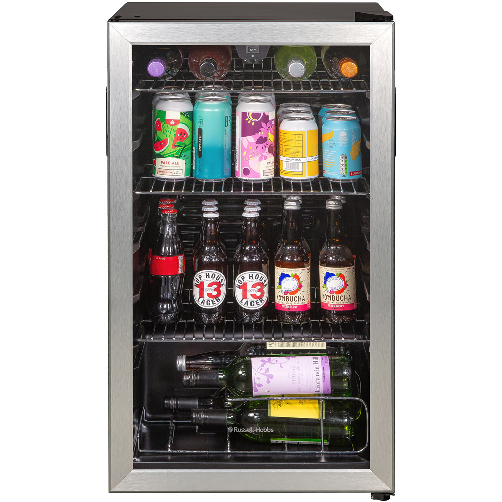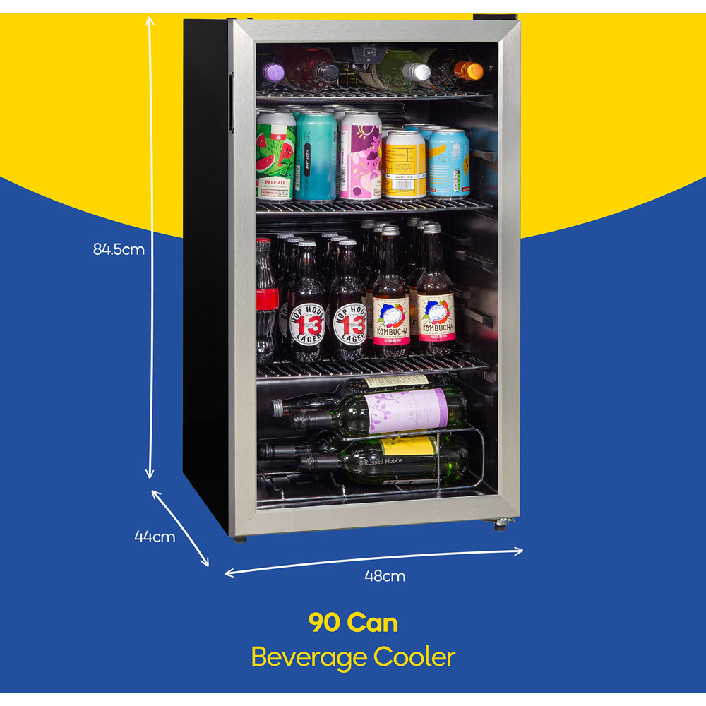 This impressive 93L freestanding wine, beer and drinks cooler is the perfect addition to your kitchen or entertainment area. With three removable shelves, and 1 wine shelf, it's easy to customise the cooler to your needs. Fully stocked, this cooler can hold up to four bottles of wine and 48 x 330ml cans, meaning its ideal for large families or people who love to entertain. With a stylish and contemporary design, it will complement any setting and the quiet 39dB noise level won’t intrude on your party atmosphere either. The sleek stainless steel door comes with a tempered glass window, which allows you to see what is inside without opening the door and the handy LED light will help you find your chosen beverage quickly. The adjustable thermostat has an impressive temperature range from 2°C - 15°C, so you can precisely adjust the temperature to suit the contents of your cooler. Plus, there are adjustable feet so that you can place your cooler wherever you like it. For added peace of mind, this Russell Hobbs appliance comes with a 1-Year Guarantee, plus an extra year upon registration. This way, in the unlikely event something goes wrong, you know we'll always be on hand to help.