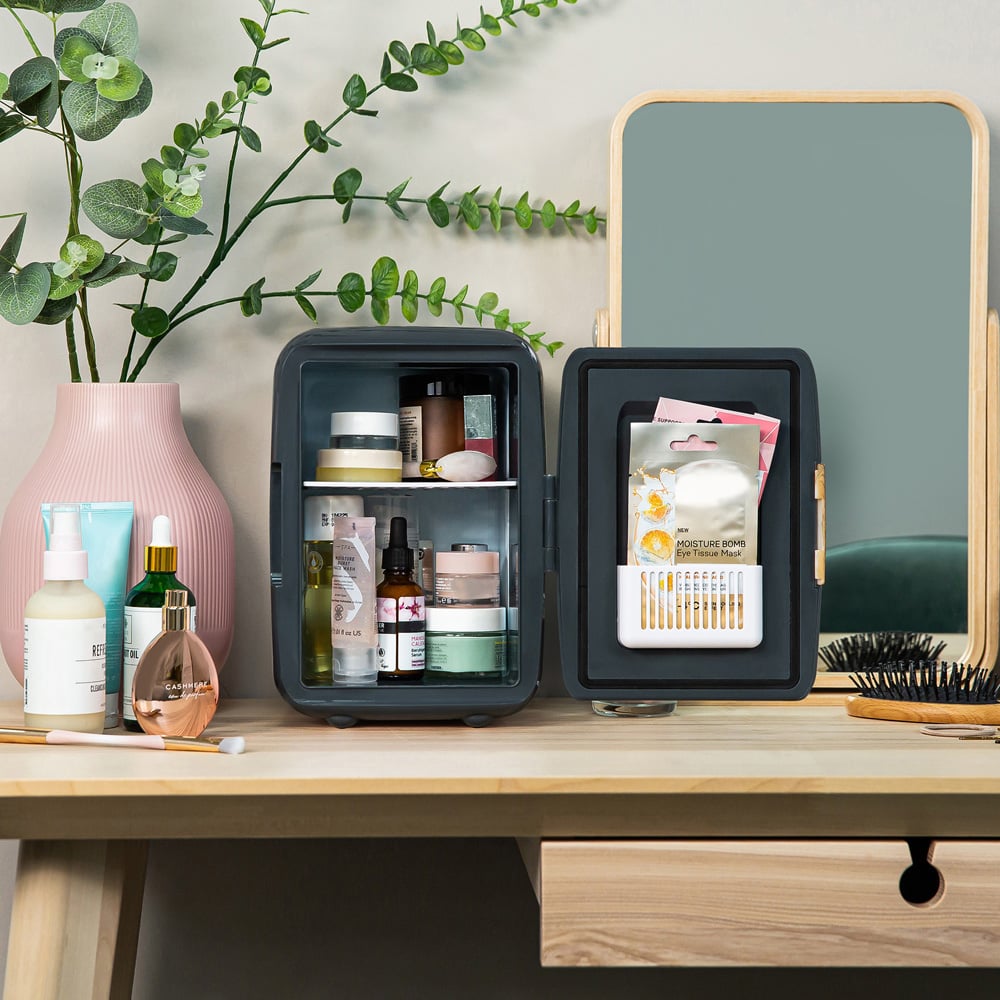 The Russell Hobbs RH4CLR1001SCG is the perfect compact cooler for keeping drinks and cosmetics chilled on the go or at home. Its classic grey and wood effect design fits seamlessly into any setting, offering 4 litres of capacity – enough for six 330ml cans or a selection of snacks. A handy inner door pocket provides dedicated space for cosmetics and face masks. Weighing just 2kg, this portable cooler features a convenient door latch and foldable carry handle for effortless transportation. Beyond chilling, it also functions as a warmer, reaching up to 65°C at the flick of a switch, ideal for keeping pastries or paninis warm. Included AC and DC car cables ensure versatility for camping trips, caravanning adventures, and family days out. Backed by a one-year guarantee for peace of mind.