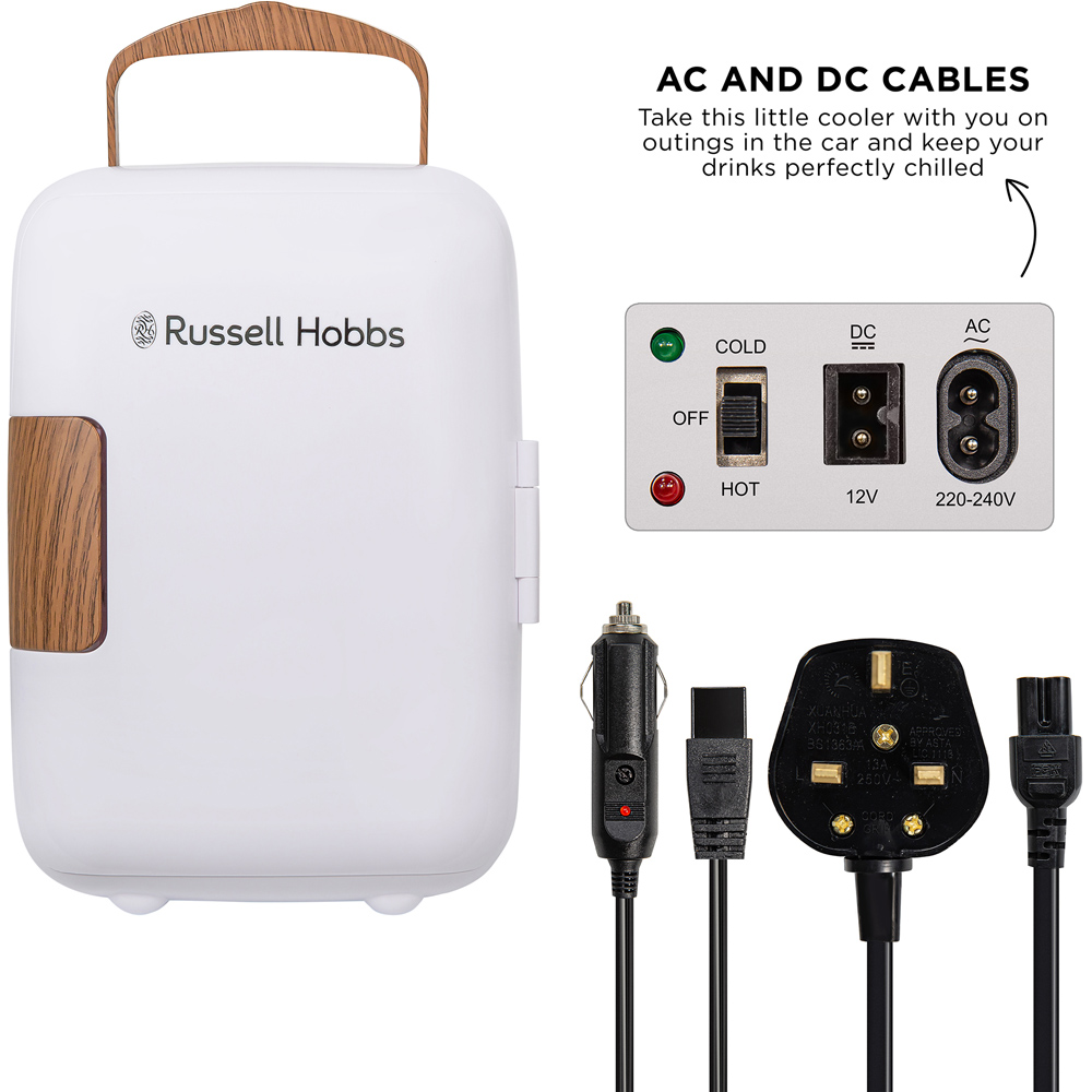 Russell Hobbs RH4CLR1001SCW White and Wood Effect 4L Mini Cooler