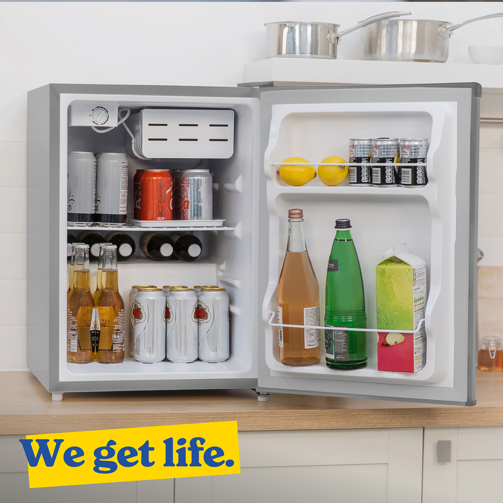 The Russell Hobbs RH67TTLF0E1SS 66L Mini Fridge in stainless steel effect offers a compact refrigeration solution designed to fit seamlessly into any space. Boasting an energy-efficient ‘E’ rating and whisper-quiet 41dB operation, this mini fridge helps keep running costs down and minimises your environmental impact. Inside, you'll find two removable wire shelves and two convenient bottle racks, offering flexible storage options. The manual temperature control allows you to easily adjust the cooling to suit your needs, ensuring your snacks and drinks are always perfectly chilled. Complete with a reversible door and adjustable feet for enhanced stability and support, this mini fridge is backed by a one-year guarantee upon registration.