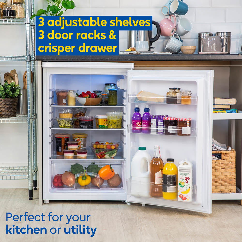 Looking for some extra fridge space to store your fresh food? The Russell Hobbs Undercounter Larder Fridge is the ideal solution. Built with practicality in mind, this fridge is compact in size and fits in seamlessly in any home. It also features adjustable feet to ensure full stability on any floor and a manual temperature control so that you can rest assured knowing your food is always chilled to perfection. Built to hold an impressive 127L, this fridge offers plentiful storage, with three shelves (2 of which are adjustable to make space for bottles and taller condiments, along with three door racks and a salad crisper for added convenience. For added peace of mind, this Russell Hobbs Undercounter Larder Fridge comes with a 2-Year Guarantee upon registration. This way, in the unlikely event that something goes wrong, you know we'll always be on hand to help.