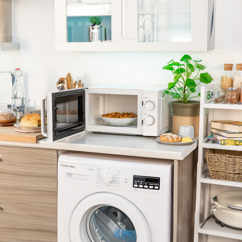 The Russell Hobbs RHM1725 Textures Manual Microwave is both affordable and stylish, and great for getting you through the weekly meal prep. Finished in white, the fusion of matt and high gloss textures will be a perfect addition to any modern kitchen. Whatever you're making for dinner, cooking is always really easy with this appliance.