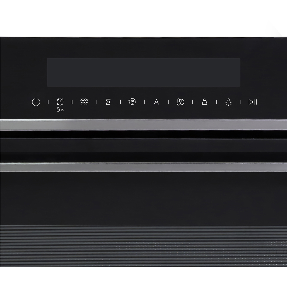 This premium product range features sleek, stylish appliances with black and dark steel accents. The versatile RHMEO7202DS acts as a microwave or fan oven, giving you ultimate cooking freedom. The large 72L interior means you can prepare multiple dishes at once and still have space left to play with. This integrated appliance comes with two shelves and a full-width grill pan, so you can cook over multiple levels. When operating as a microwave, this models offers 800W of power, as well as 13 autocook menus and five power levels. The RHMEO7201DS features 13 oven functions and a range of settings, so you can master every recipe. Programmes include fan heating, double grill, single grill, grill with fan, microwave and microwave with convection. This electric oven features Intelligent Air Technology, offering an even temperature throughout for consistent cooking. Not only does this reduce cooking times, it also allows you to cook at lower temperatures with the same great results. Cleaning your oven is never fun, which is why we've made this oven's interior with easy-clean enamel, designed to be tough and durable. With a smooth, resistant coating, cleaning is fuss-free and your oven looks newer for longer. Easier cleaning means you can spend more time cooking and less time scrubbing. The RHEO7201DS also features a quadruple-glazed glass door, designed to keep the heat in your oven and the outer glass cool to the touch. This not only decreases the temperature of the oven door, but also reduces the time it takes for your oven to heat up. Cook up the right recipe for your utility bills and the environment, with the Russell Hobbs RHMEO7201DS. This oven has an A+ energy efficiency rating, so you can cook without worrying about costs or your carbon footprint. It also offers you an energy-saving Eco function when cooking, meaning you get the same great results at a lower cost. This product also comes with an impressive three year guarantee upon registration, for that added peace of mind.