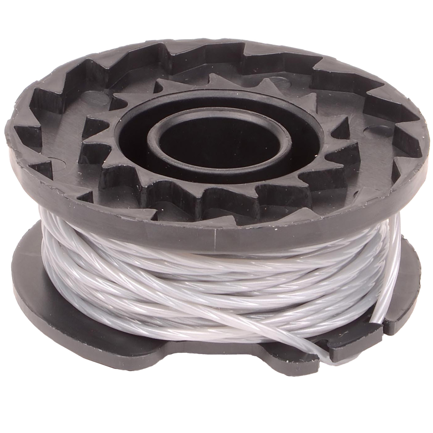 Pre-wound replacement spool and line. Fits Ryno CLGT2425T, Bosch ART 23 SL, ART 26 SL, EasyGrassCut 23, EasyGrassCut 26, EasyGrassCut 18, EasyGrassCut 18-230, Qualcast CLGT2425H/A, Ryobi 18v One+ models, RLT36, RLT36B, RLT36C33, and Spear & Jackson CLGT2425H trimmers. Ensures flawless lawn trimming.