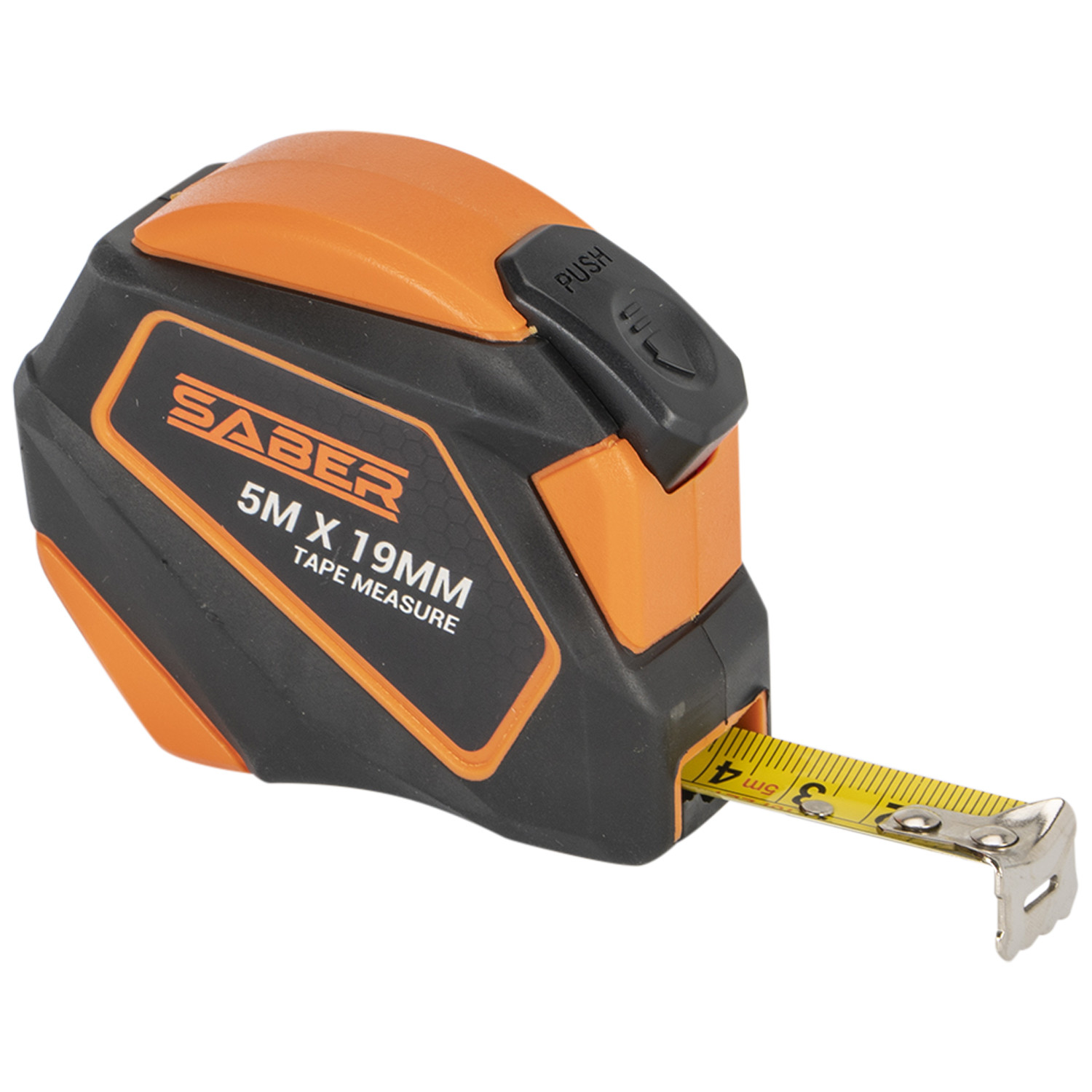 Make accurate measurements a breeze with the Saber 5m Durable Tape Measure, a must-have for any toolbox or utility drawer. Featuring a robust steel blade tip, this tape measure easily hooks onto objects for precise measurements. Designed with a handy strap and a double locking mechanism, it allows for smooth and efficient use every time.