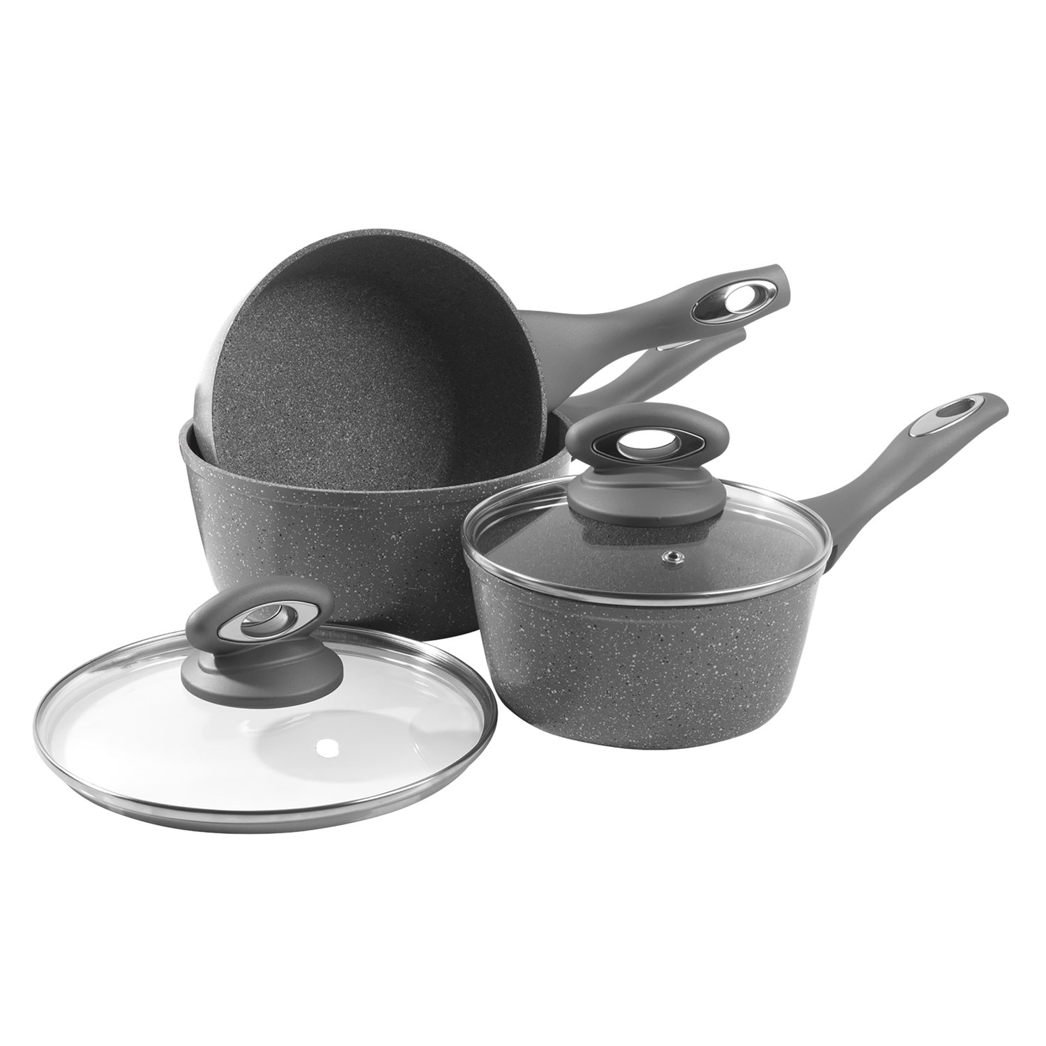 Upgrade your cooking experience with this three-piece marble saucepan set. Perfect for starting a collection or refreshing your existing cookware, these sleek and durable saucepans are a kitchen essential. Each pan features a revolutionary non-stick marble coating, allowing you to cook healthier meals with less oil. The set includes 16cm, 18cm, and 20cm saucepans, all equipped with tempered glass lids featuring steam vents to prevent boil-overs. Cleaning is effortless thanks to the dishwasher-safe design—no soaking required! Their high-quality induction bases ensure even heat distribution for professional-level cooking.