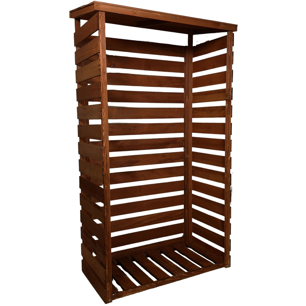 Keep your firewood dry and organised with this stylish wooden log store. Perfect for keeping a ready supply of logs for cosy winter evenings or lively garden gatherings, this shed provides a sheltered space to protect your fuel from the elements. The raised floor prevents dampness, while the sloping roof ensures rainwater runs off efficiently. Its natural wood finish complements any outdoor setting, and the slatted design promotes excellent airflow, keeping the logs dry and ready to burn. This attractive and practical log store is supplied flat-packed for self-assembly and is ideal for outdoor use. Dimensions: Height 157cm, Width 88cm, Depth 43cm, Internal Storage Height 148cm (all dimensions are approximate.