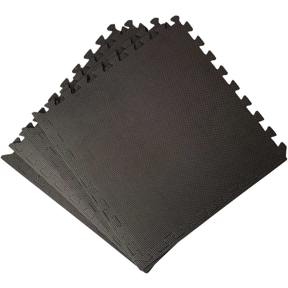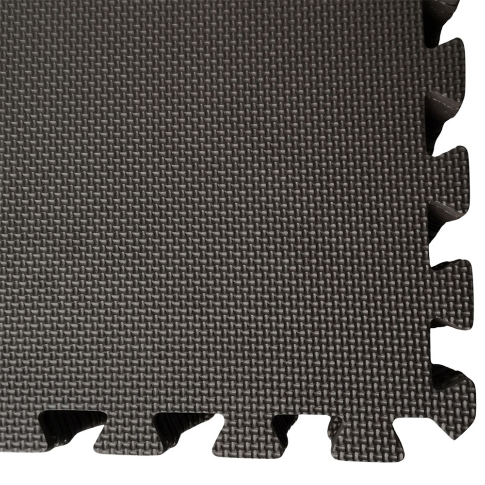 Elevate your floor protection with Samuel Alexander EVA Foam Floor Mats. These water-resistant and easy-to-clean mats are perfect for indoor and outdoor use, providing a safe play area, comfortable gym surface, or stable base for hot tubs and tents. Ideal for garages, kitchens, basements, and more, these mats offer stylish protection against scratches and dents from gym equipment and other objects. Made from non-toxic, BPA-free EVA foam, their non-slip and sound-absorbing design ensures safety and prevents slips, even when wet. Each 60 x 60cm mat is 1cm thick, featuring an interlocking design with included edging strips for simple installation. The raised oval pattern adds a modern touch. Versatile and practical for paddling pools, workshops, sheds, caravans, or simply relaxing in the garden, each set contains eight mats covering 2.88sqm (31 sqft). They are black in colour.