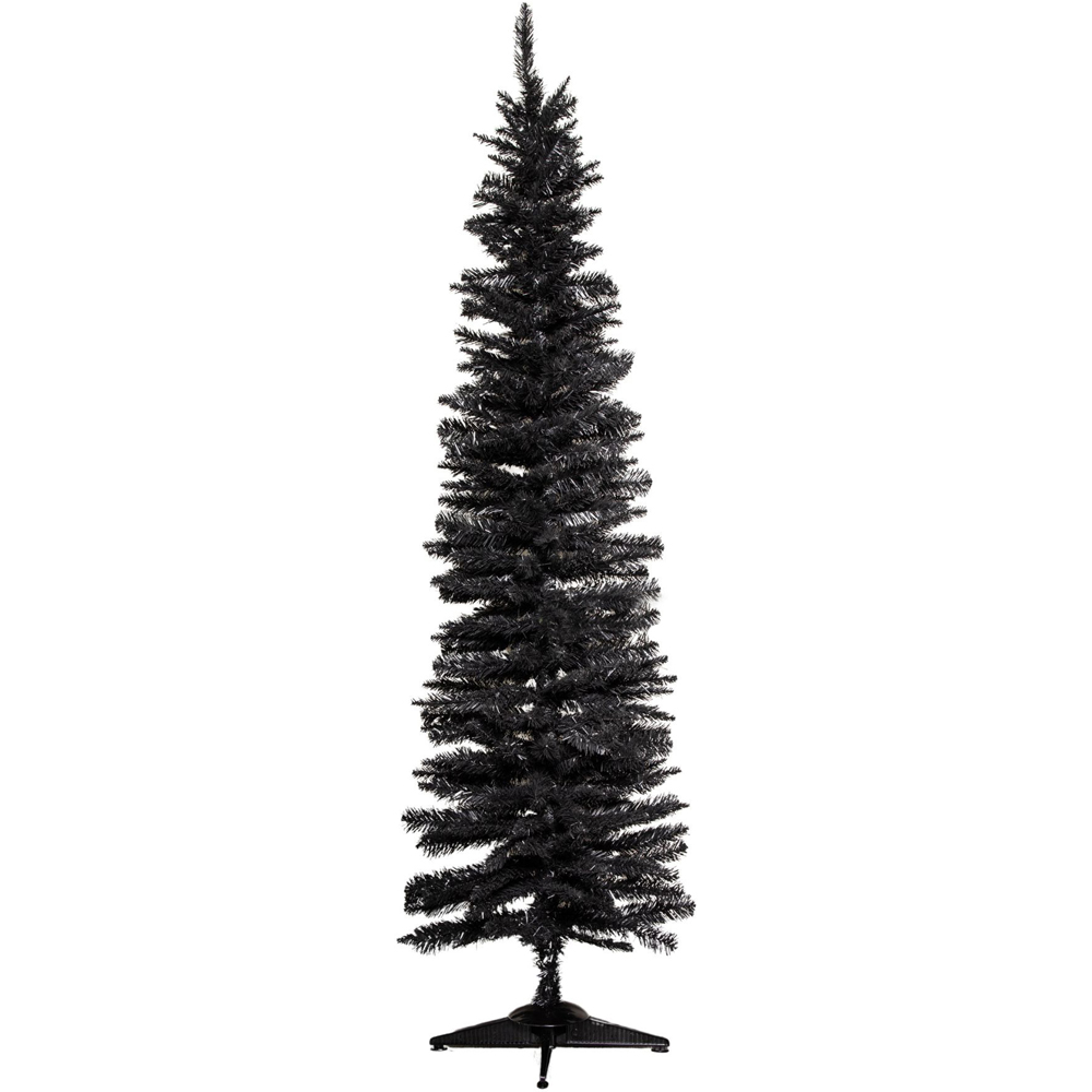 Bring a touch of festive magic to compact spaces with a slim black pencil pine that stands tall and striking, ready to transform any room into a Christmas wonderland. Designed for those who want to make a bold statement without sacrificing space, this artificial tree rises to 7ft, offering ample room for your favourite decorations and twinkling lights. With 401 realistic black PVC tips, you'll enjoy a lush, full appearance that fits perfectly in smaller areas while still feeling grand. Assembly is a breeze with sections that click together and a sturdy black plastic stand, making it easy to set up and arrange the branches for the perfect look. Suitable for indoor use only, it's a brilliant choice for anyone seeking a modern twist on traditional holiday decor.