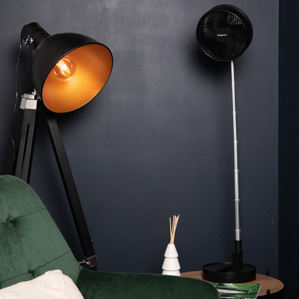 Enjoy a cool and relaxing summer with the Samuel Alexander Black Telescopic Cooling Fan, standing at 39 inches. Perfect for use throughout the home, garden, camping trips or even days out at the beach. Enjoy the freedom of a freestanding and cordless design. The collapsible design features a telescopic stand, extending from 35cm to 1m, with adjustable settings and angles for optimum cooling. With three speed settings for complete control and a quiet motor, you can relax without being disturbed. Enjoy up to ten hours of battery life on a single charge, ensuring a restful night’s sleep. Constructed from ABS material, it houses a 3600mAh built-in rechargeable battery, powered by a micro-USB cable. When not in use, the fan collapses to a compact size for convenient storage under the bed or in a cupboard. Product dimensions: Extended height: 1m. Stand diameter: 19cm. Stand thickness: 4cm. Fan diameter: 19cm. Compact thickness: 11cm. USB Cable Length: 1m.