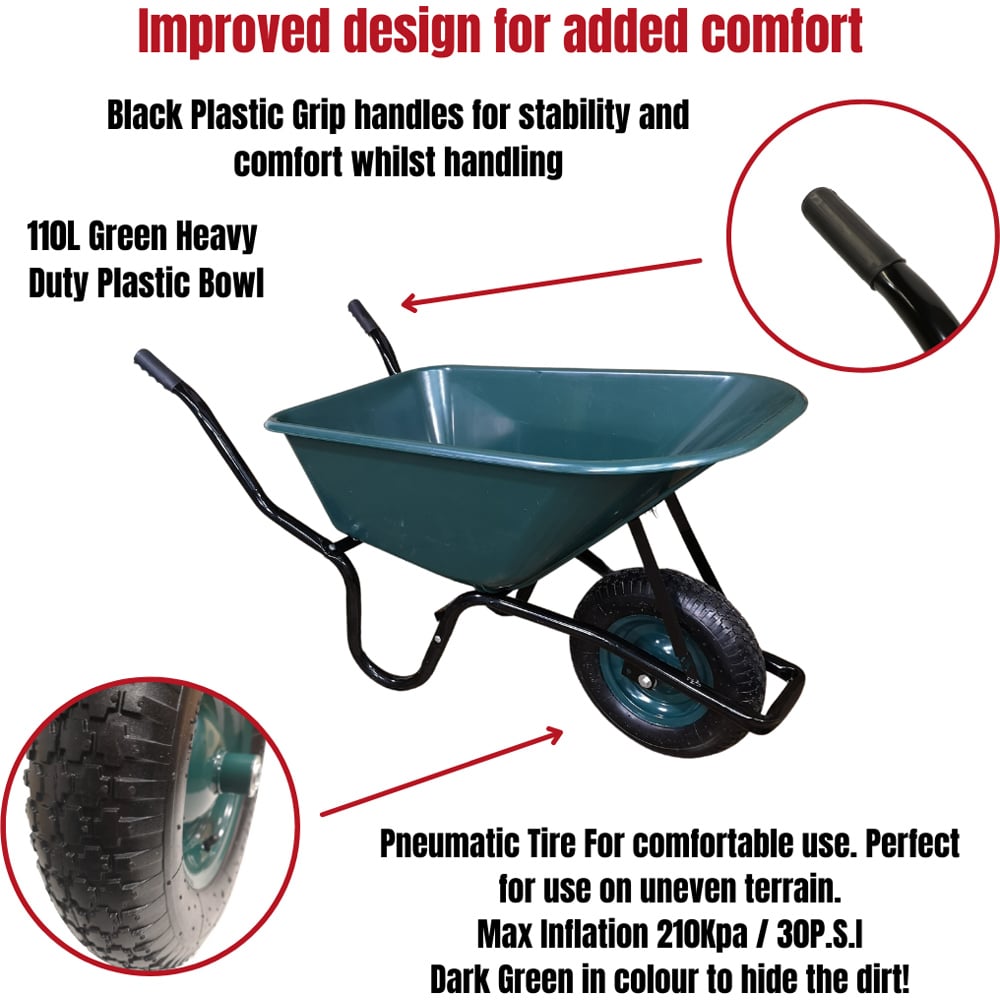 Samuel Alexander Green Heavy Duty Plastic Garden Wheelbarrow 150kg