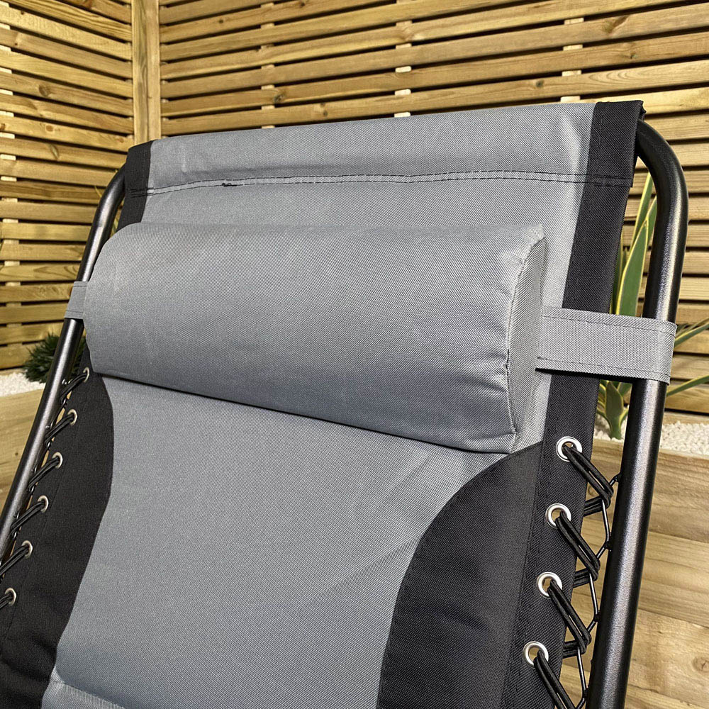 Embrace relaxation in the garden with the Samuel Alexander Zero Gravity Multi Position Garden Chair Lounger, expertly crafted to blend comfort with resilience. Boasting a robust powder-coated black metal frame paired with durable grey and black padded fabric, this chair promises a soothing experience. Its innovative design allows you to effortlessly recline to your preferred position by simply shifting your weight. For added comfort, a removable headrest pillow is included, ensuring your neck is well-supported.