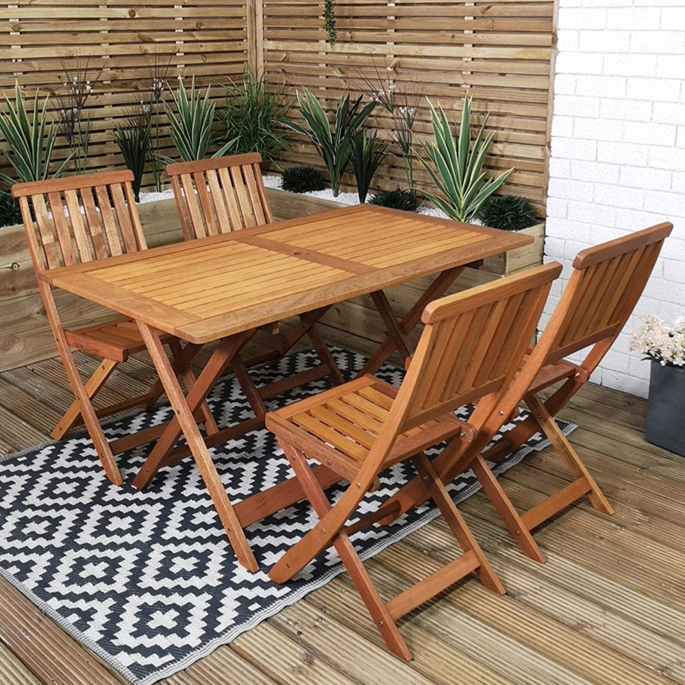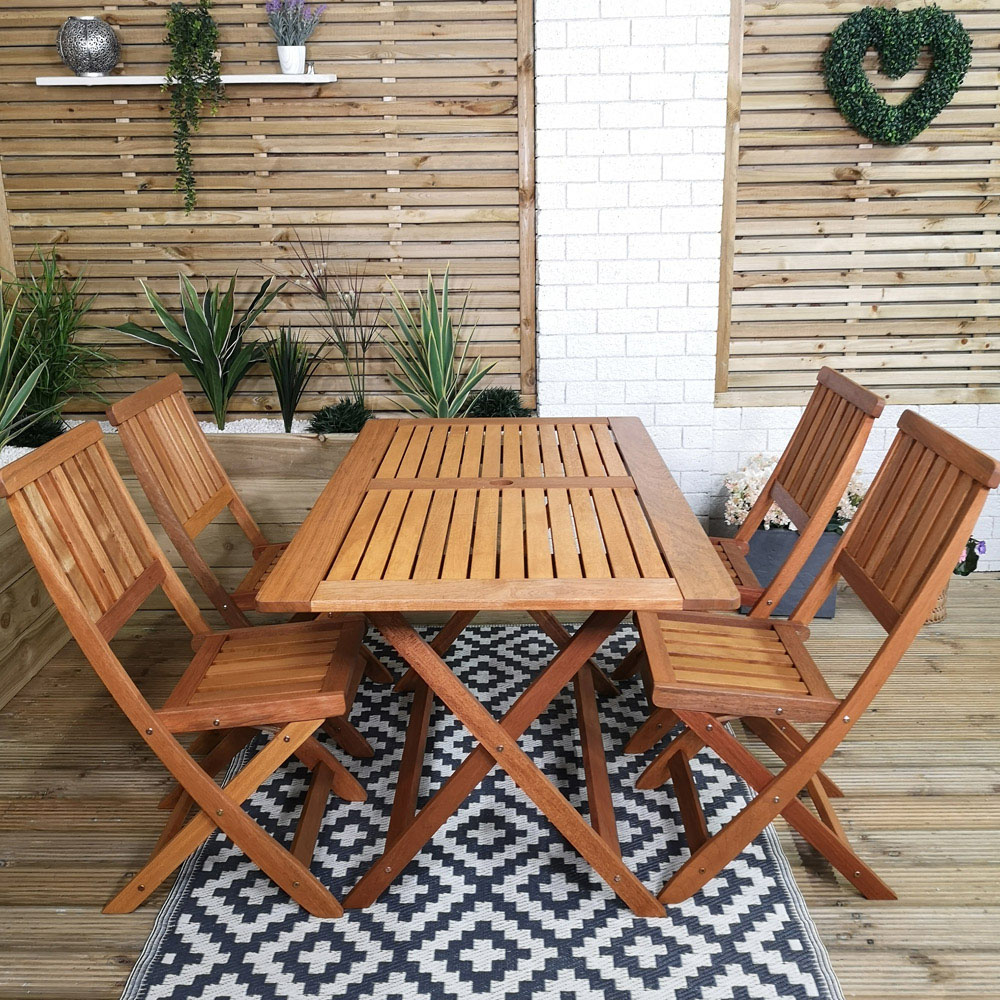 Samuel Alexander Wooden 4 Seater Folding Rectangular Garden Dining Set