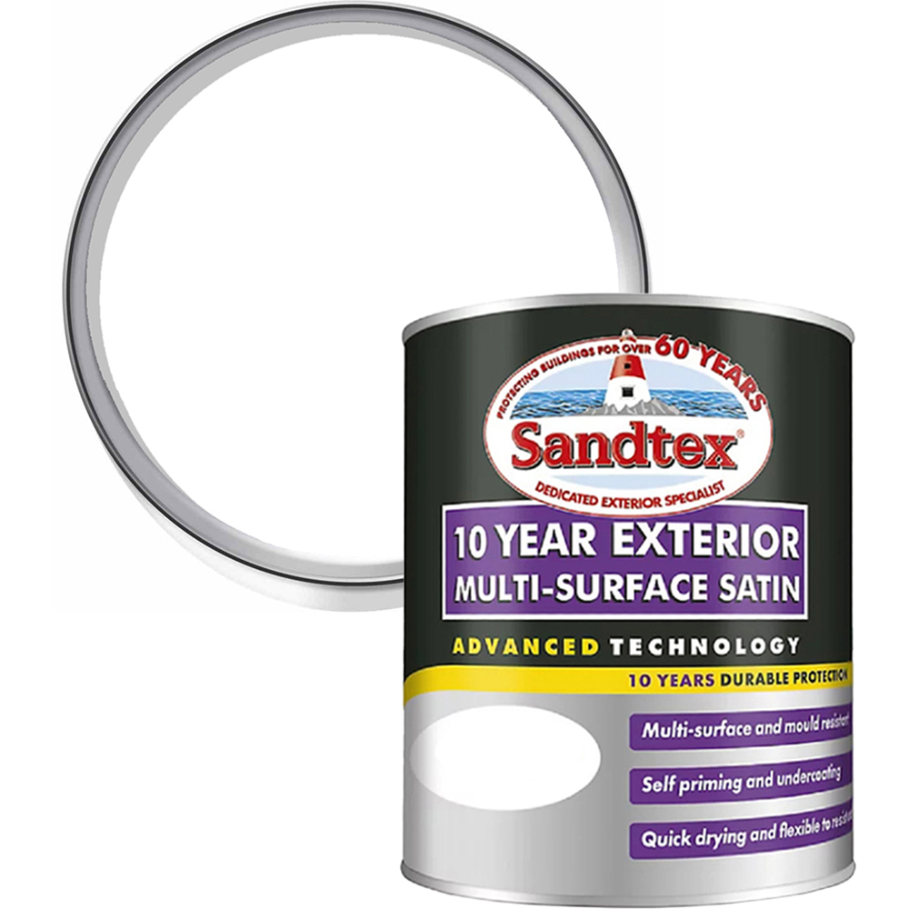 Sandtex 10 Year Quick Dry Pure Brilliant White Exterior Multi-Surface Satin Paint 750ml