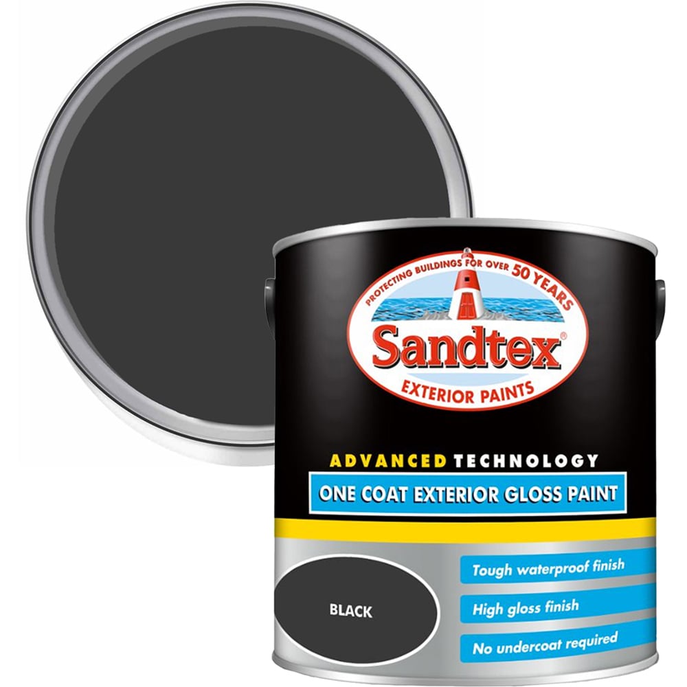 Sandtex One Coat Black Exterior Gloss Paint 2.5L