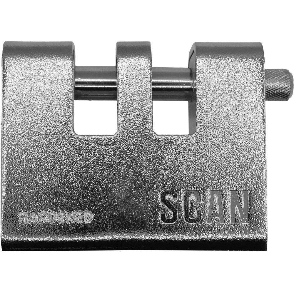 Secure your valuable motorbike, gate, or plant machinery with the robust Scan Armoured Chain Twin Slot Padlock. Its brass body, encased in steel armour, provides superior protection against theft. The innovative twin-slot design restricts access, while the rotating shackle significantly increases resistance to cutting and sawing attempts. Three keys are included, and the key-retaining feature ensures the key can only be removed when the padlock is locked.
